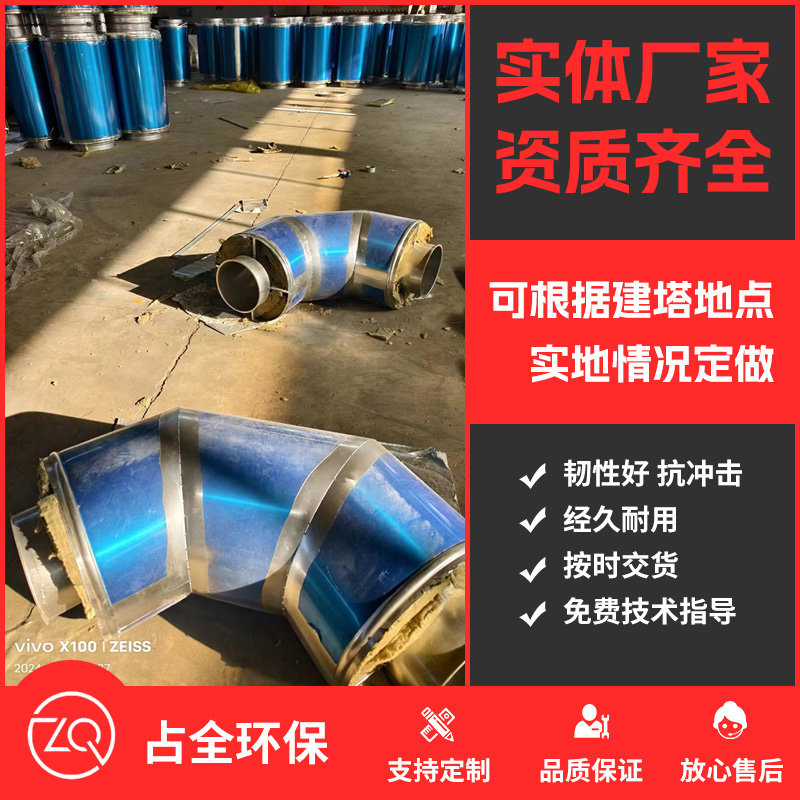 不銹鋼煙囪為分段組合結構,可靈活組合成任意方向的管道和煙囪。每個部件的基本結構由內筒和外筒組成。在內外筒體之間形成環形夾層。保溫材料(硅酸鋁纖維棉)可填充保溫。絕緣層厚度為25 mm。一種是使用空氣夾層來滿足低絕緣要求。煙囪內層采用304或316不銹鋼,壁厚0.8-1.2mm。輸送介質高溫可達760℃,耐壓0.15Mpa。